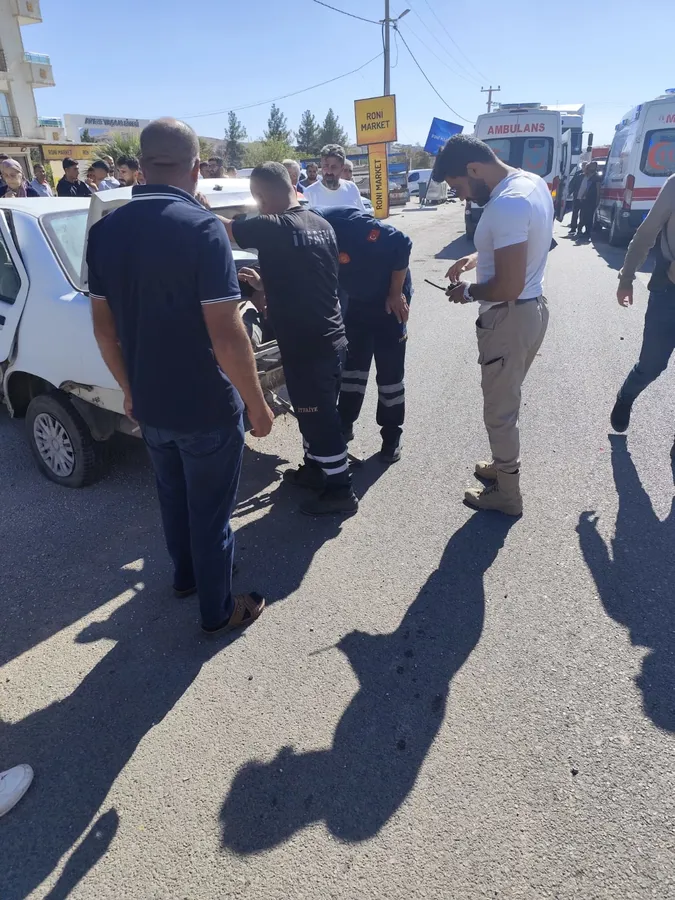 Derik İlçesinde öğle saatlerinde iki otomobilin çarpışması sonucu trafik kazası meydana geldi.