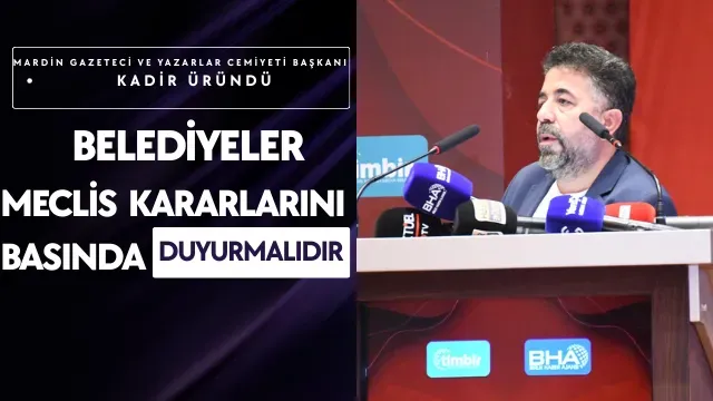 Mardin Gazeteciler ve Yazarlar Cemiyeti Başkanı Kadir Üründü, Belediye Meclis duyurularının ve alınan karar özetlerinin, Basın İlan Kurumu’na tabi olarak yayım yapan gazete ve internet haber sitelerinde duyurulması için belediyelere çağrıda bulundu.