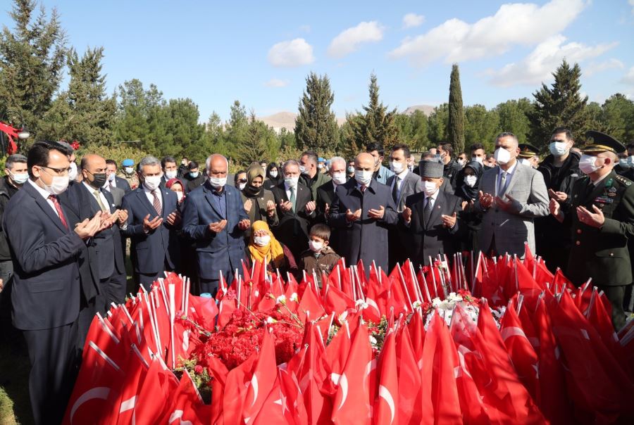 Saygı duruşunda bulunulması, İstiklal Marşının okunmasının ardından askeri manga tarafından saygı atışı yapılması ve Türk Bayrağı göndere çekilmesi ile devam eden törende, Vali Mahmut Demirtaş’ın Şehitlik Özel Defteri’ni imzalamasının ardından İl Müftüsü Ali Hayri Çelik tarafından şehitler için dualar okundu.