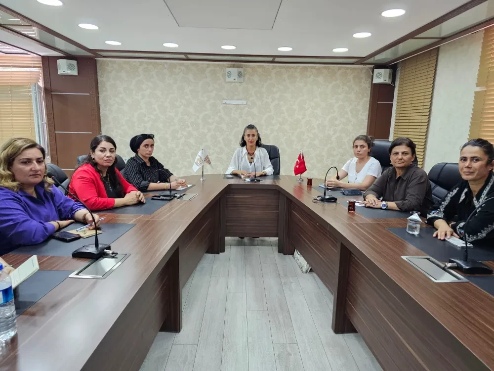 Mardin Büyükşehir Belediyesi toplantı salonunda düzenlenen toplantıya Eş Başkan Devrim Demir, Genel Sekreter Yardımcısı Evin Soysal, İlçe Belediye Kadın Eş Başkanları, belediye meclis kadın üyeleri katılım sağladı.
