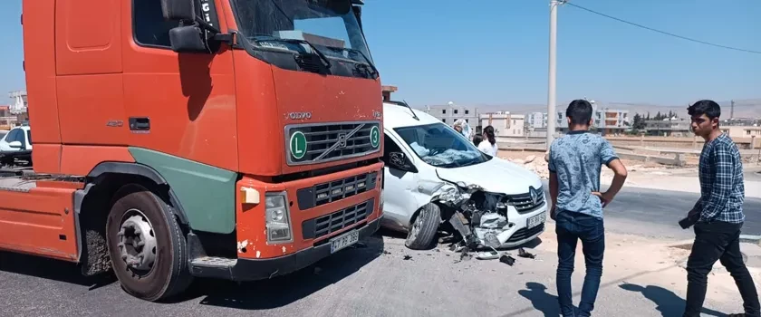 Yol çalışmalarının devam ettiği 17 kilometrelik Kızıltepe Güney Çevre Yolu’nda TIR ile otomobil çarpıştı.