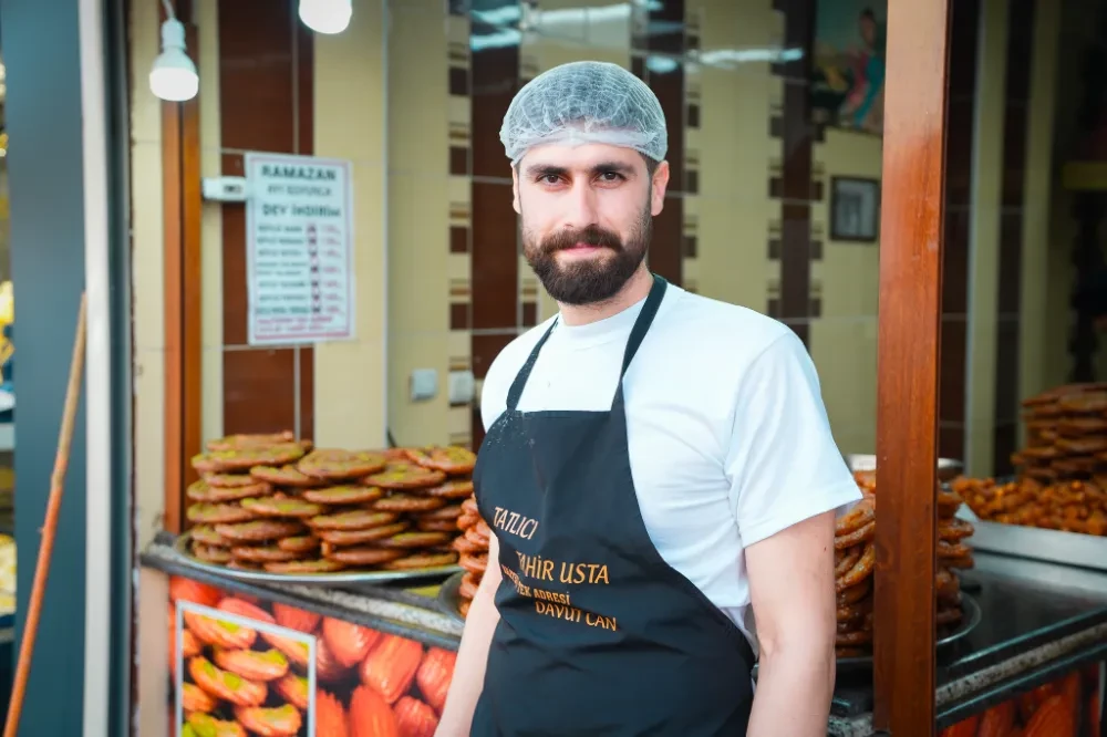 Baba mesleğini gururla sürdürdüğünü ifade eden Davut Aktaş, “Babam mekanı cennet olsun. Allah rahmet eylesin. Babam 25 sene boyunca bu işi yaptı. O her zaman güzel tatlılar yapardı. Ben de onun oğlu olarak devam ediyorum. Malumunuz Ramazan ayına girdik. Bizi bilenler bizim lezzetimiz için geliyor. Tatlılarımız çok güzel. Sade, cevizli, fıstıklı, tereyağlı var. Tatlılarımızı sütle yapıyoruz.” dedi.