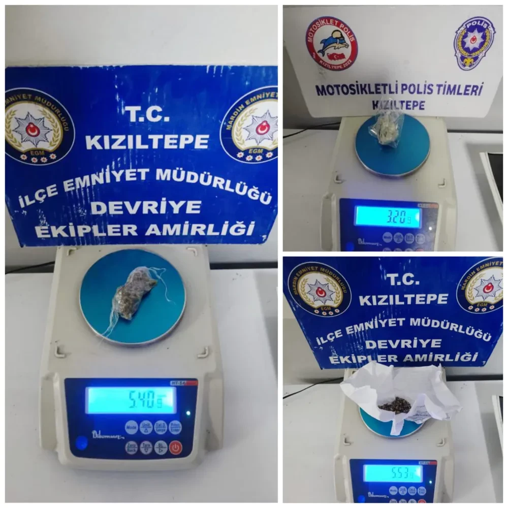 Kızıltepe İlçe Emniyet Müdürlüğüne bağlı Devriye Ekipler Amirliği ve Motosikletli Timler tarafından Kızıltepe ilçesindeki çeşitli noktalarda, gece vakti gerçekleştirilen denetimlerde, şüpheli 4 şahsın üzerinde toplam 58,08 gram esrar ele geçirildi.