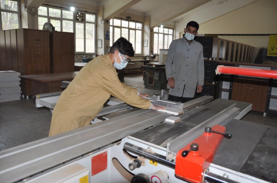 Mardin’in Kızıltepe ilçesinde bulunan Mimar Sinan Mesleki  ve Teknik Anadolu Lisesi, adeta mobilya fabrikası gibi üretim yapıyor.
