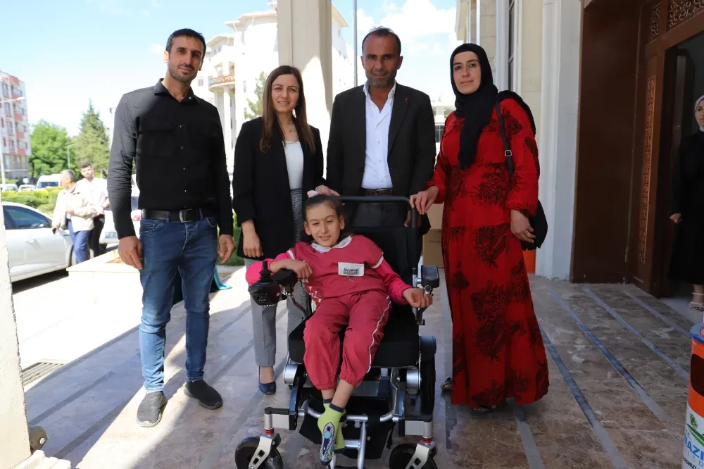 Mazıdağı Belediyesi tarafından ihtiyaç sahibi bedensel engelli küçük Elif’e akülü tekerlekli sandalye hediye edildi.
