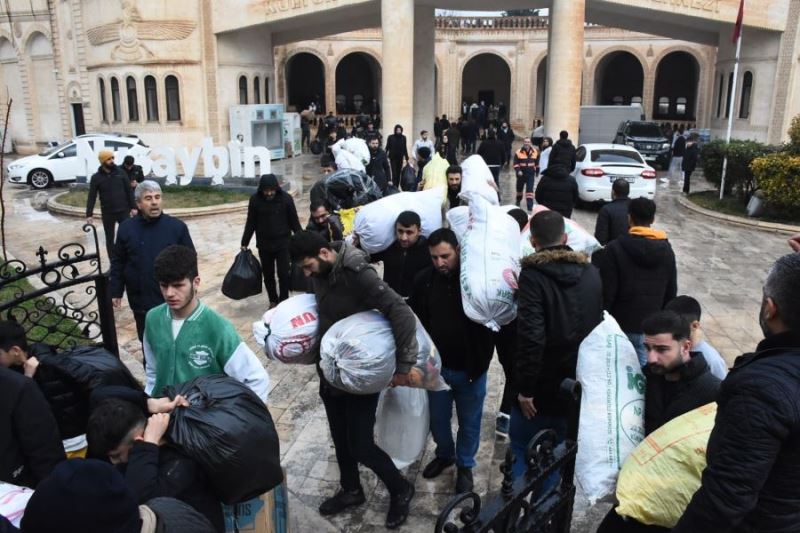 Nusaybin Kaymakamlığı ile belediye tarafından Mitanni Kültür Merkezi'nde kurulan Afet Koordinasyon Merkezinde yardım malzemeleri toplandı.
