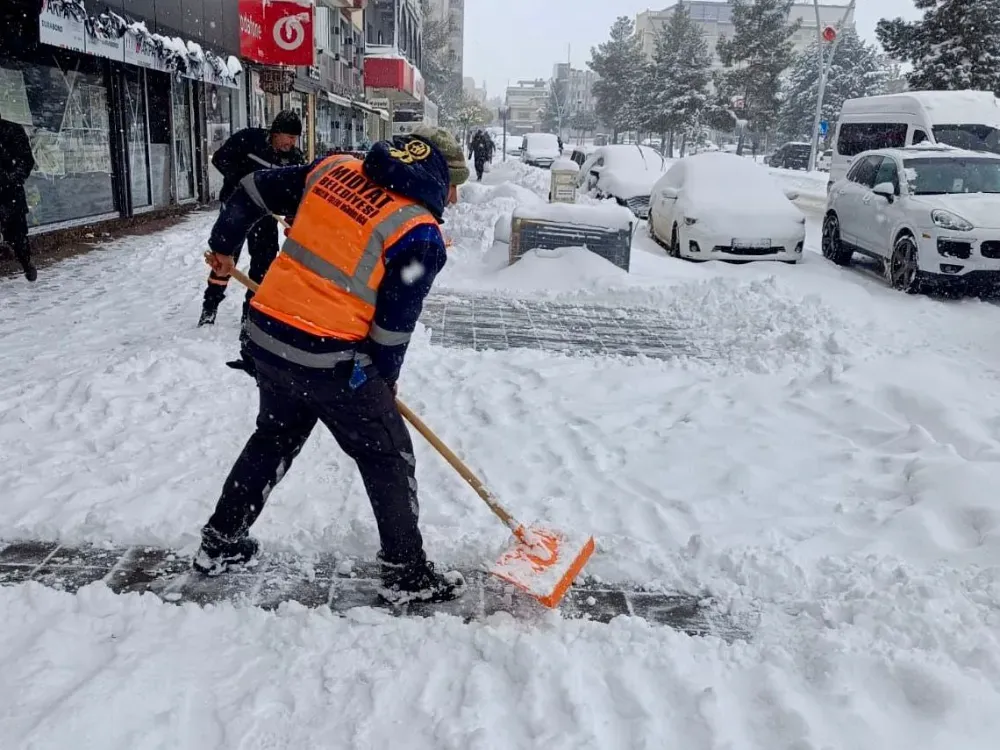MARDİN - Mardin'in Midyat ilçesinde etkili olan yoğun kar yağışının ardından Midyat Belediyesi, Karayolları Genel Müdürlüğü ve Büyükşehir Belediyesi ekipleri ulaşımın aksamaması için 24 saat esasına göre çalışma başlattı.